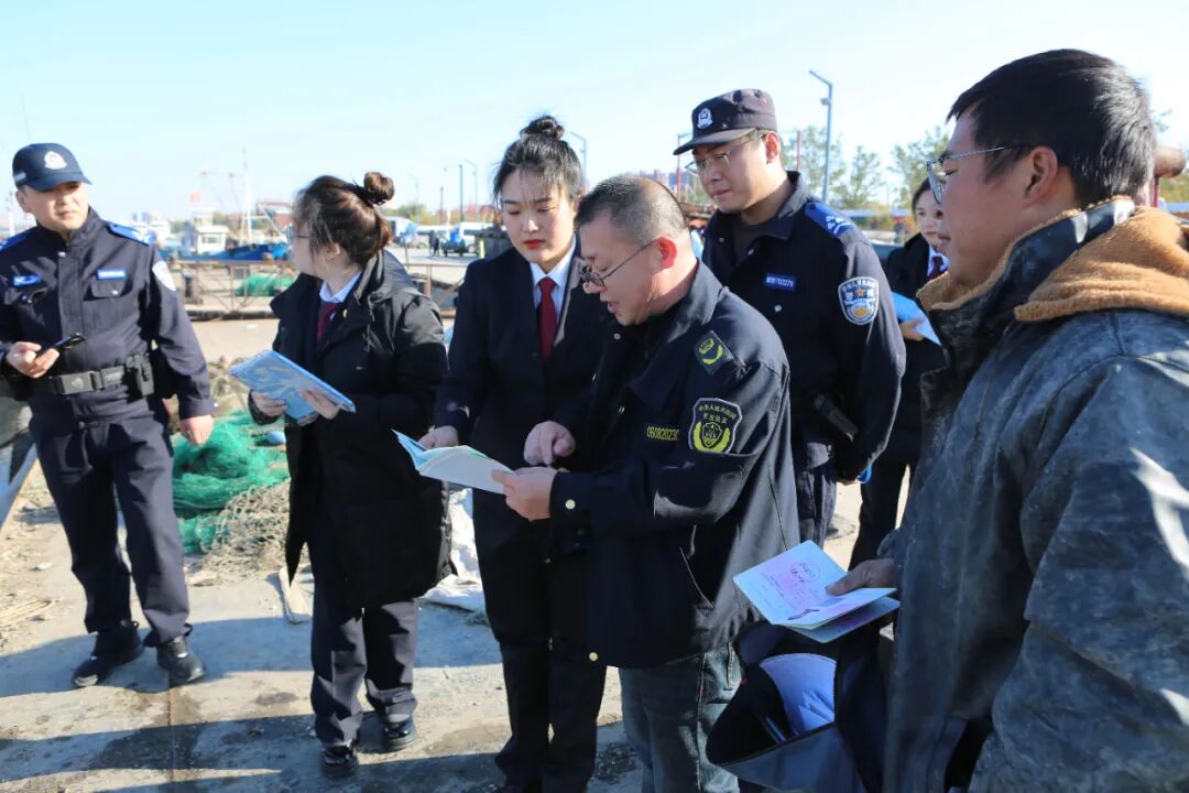 2025年8月开渔季前夕,检察干警走进四道沟码头开展法治宣传活动。通过发放宣传资料、现场法律咨询等方式,向广大渔民详细解读最高检“八号检察建议”以及安全生产相关法律法规,重点围绕涉渔“三无”船舶、休渔期禁用渔具等风险隐患,阐明违法违规作业可能引发的法律后果,引导渔民增强法治意识、规范作业行为,从源头上预防安全风险。