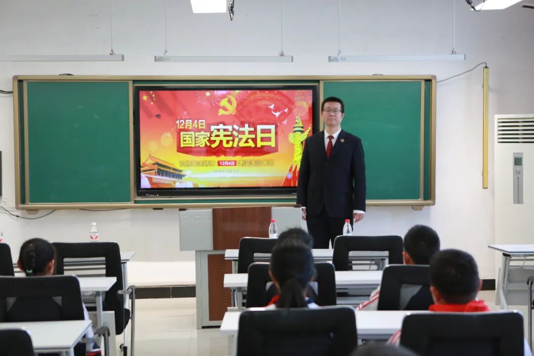 在第十二个国家宪法日来临之际,为让法治精神浸润校园沃土,引导青少年扣好人生第一粒“法治扣子”,西市区实验小学迎来了一位特殊的“老师”——西市区人民检察院检察干警战怀尧同志以法治副校长的身份为学生们带来了“与法同行·宪法先行”法治知识教育课,让法律的种子在孩子们心中生根发芽。