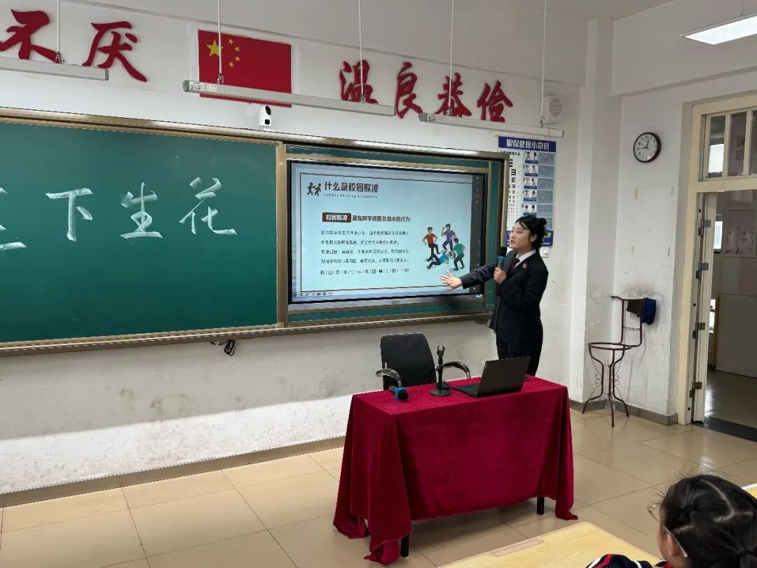 讲座中,营口市西市区人民检察院检察干警依托学生欺凌正式纳入治安管理处罚范畴的关键节点,通过生动鲜活的案例、趣味十足的互动问答,围绕校园欺凌的识别与防范进行讲解,倡导同学们既要做不欺凌他人的文明学生,也要做敢对欺凌说“不”的勇敢少年,并深入剖析、纵向延伸,对未成年人易涉违法犯罪进行详细阐释,阻断不良行为向违法犯罪的演化。此次假前讲座将法治种子播撒在同学们的心田,让同学们深刻认识到校园欺凌不仅会给他人造成身心创伤,还可能会涉及违法犯罪,面对欺凌时要勇敢拿起法律武器保护自己,在假期生活中做到坚决杜绝欺凌、坚决不触碰法律红线。