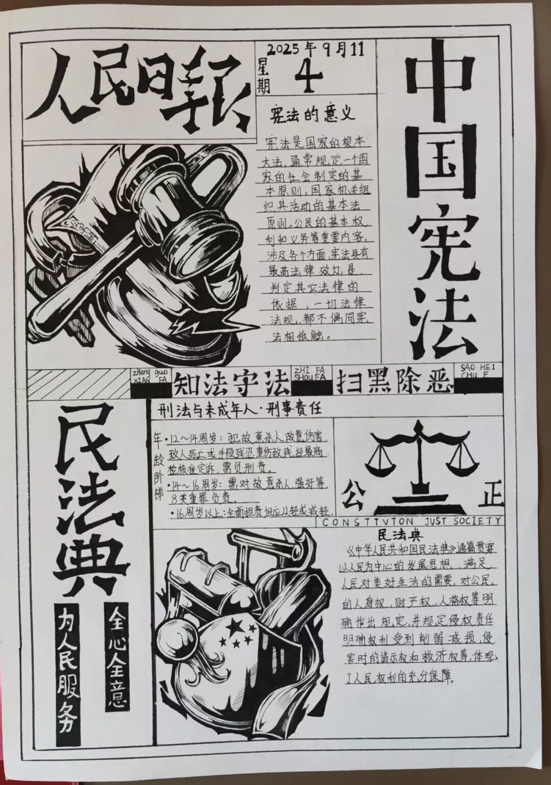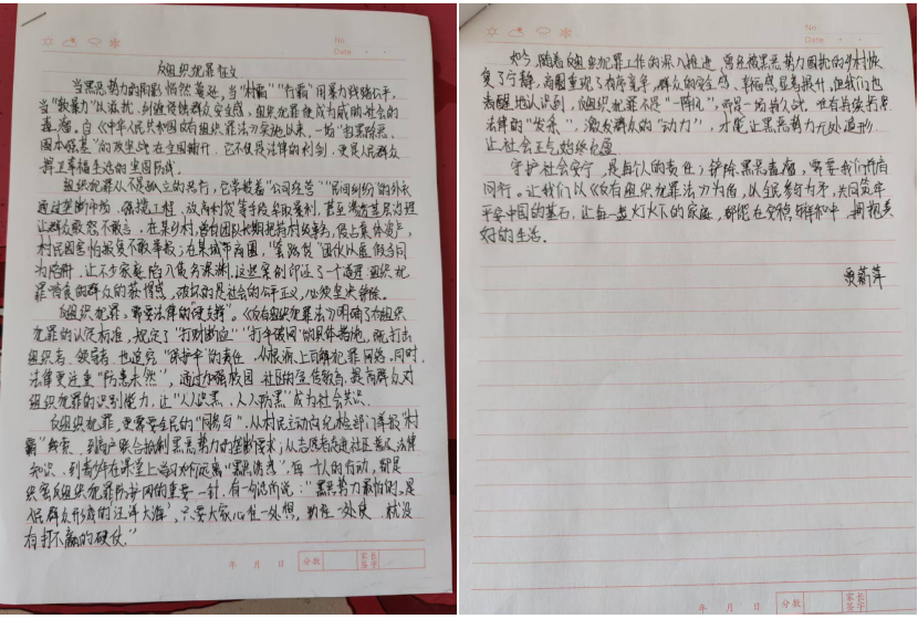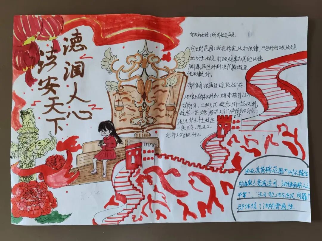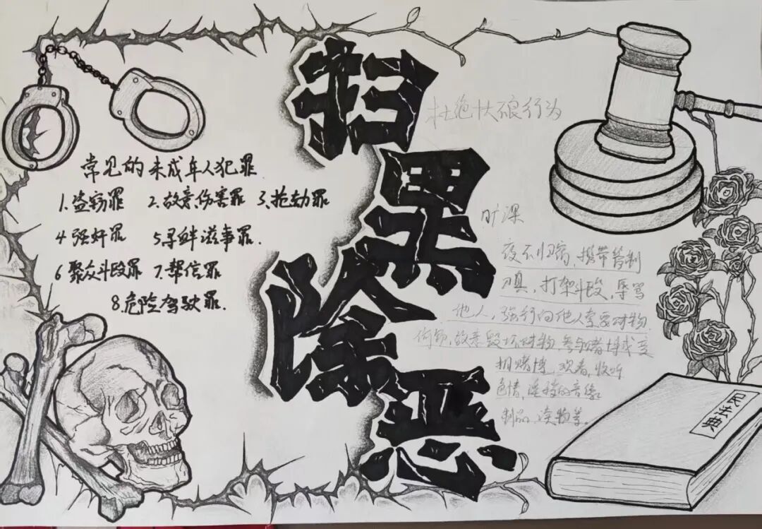 课后延伸的比赛成为“巩固法治学习的关键一环”:活动不仅聚焦日常法律知识,更专门设置反有组织犯罪宣传板块,引导同学们通过画笔、文字认识“什么是校园欺凌背后的不良团伙”“如何拒绝陌生人引诱”。从学生作品和反馈里,能清晰看到课堂知识的“落地生根”。